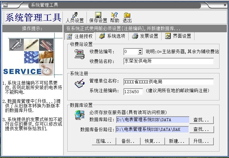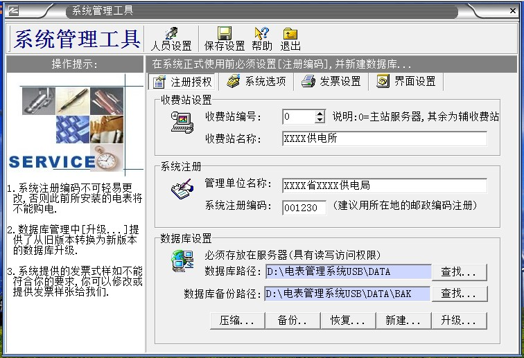 2、“系統(tǒng)數(shù)據(jù)”必須備份,如果沒(méi)有數(shù)據(jù)備份的話,系統(tǒng)第2次重裝的時(shí)候輸入原來(lái)第一次系統(tǒng)安裝設(shè)置的“系統(tǒng)注冊(cè)編碼”,導(dǎo)入備份的數(shù)據(jù)庫(kù),才能使原來(lái)安裝的電表正常充值使用。