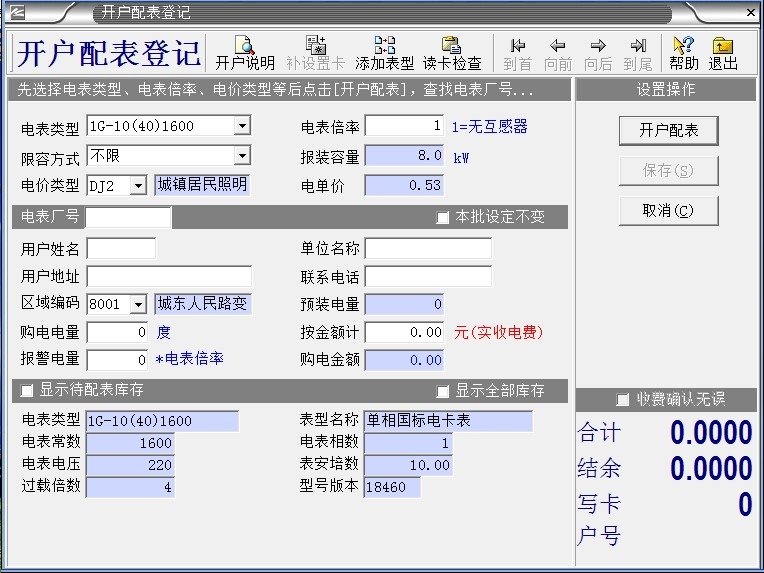 ,鼠標(biāo)左鍵:“開(kāi)戶配表登記”,出現(xiàn)以下對(duì)話框: