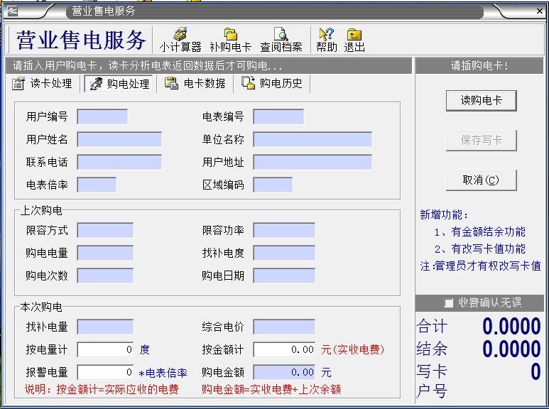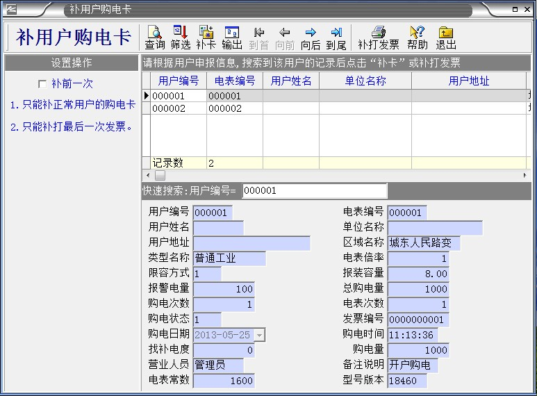 補(bǔ)卡操作完成后,請(qǐng)先將此卡插入被補(bǔ)卡的電表中,如電表顯示PO=**,表示補(bǔ)卡成功,這時(shí)才可以購(gòu)電。