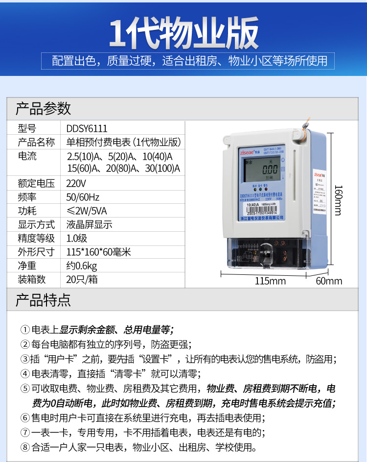 (1)預付費電能表歷經多年發展,由開始的只能收取電費,發展到可以代收物業費和房租費的功能,后續系統升級為除控制用戶用電外,還可控制用戶的物業費或房租費(物業費或房租費到期電表自行斷電,補交物業費或房租費后,預付費電表方可來電),本章通過圖片形式講解用戶關于預付費電度表的功能、操作系統、接線方式等問題。