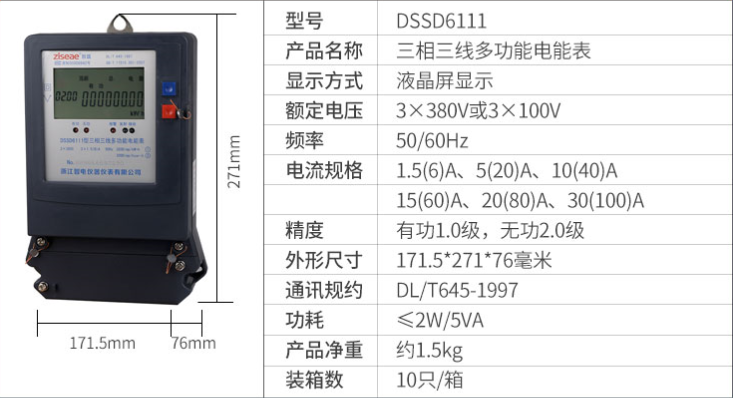 DTSD/DSSD6111型電子式三相智能電能表是采用集成電路,應(yīng)用數(shù)字采樣處理技術(shù)及SMT工藝,根據(jù)工業(yè)用戶實際用電狀況所設(shè)計、制造的儀表。