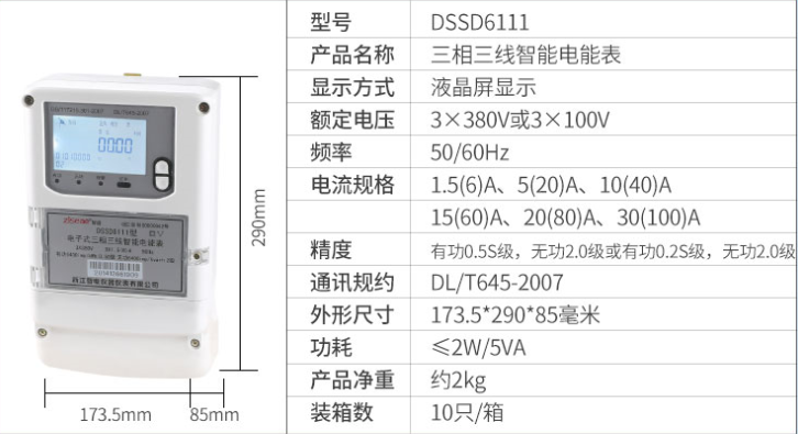 型號:DSSD6111三相三線智能電表