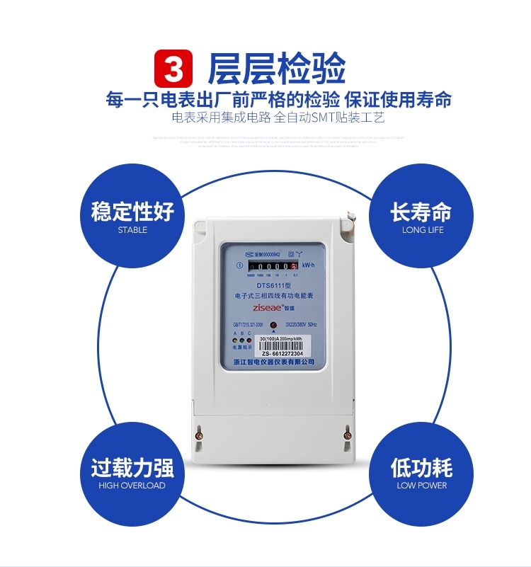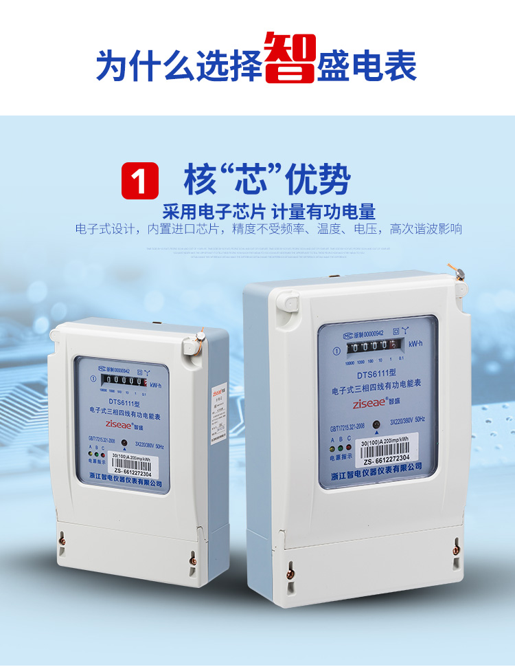 DTS6111型三相四線和DSS6111型三相三線兩種型號(hào)三相電子式有功電能表,內(nèi)部運(yùn)用了集成電路在經(jīng)過SMT工藝生產(chǎn)制作而成。結(jié)構(gòu)設(shè)計(jì)合理,制作工藝先進(jìn)。跟傳統(tǒng)的電能計(jì)量表對比,三相電子式有功電能表的測量準(zhǔn)確度高、性能可靠、節(jié)能。