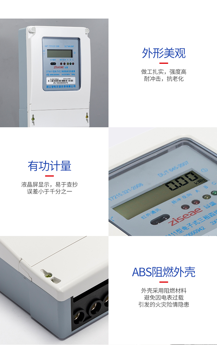DTS6111型三相四線和DSS6111型三相三線兩種型號(hào)三相電子式有功電能表,內(nèi)部運(yùn)用了集成電路在經(jīng)過SMT工藝生產(chǎn)制作而成。結(jié)構(gòu)設(shè)計(jì)合理,制作工藝先進(jìn),跟傳統(tǒng)的電能計(jì)量表對(duì)比,三相電子式有功電能表的測(cè)量準(zhǔn)確度高、性能可靠、節(jié)能。