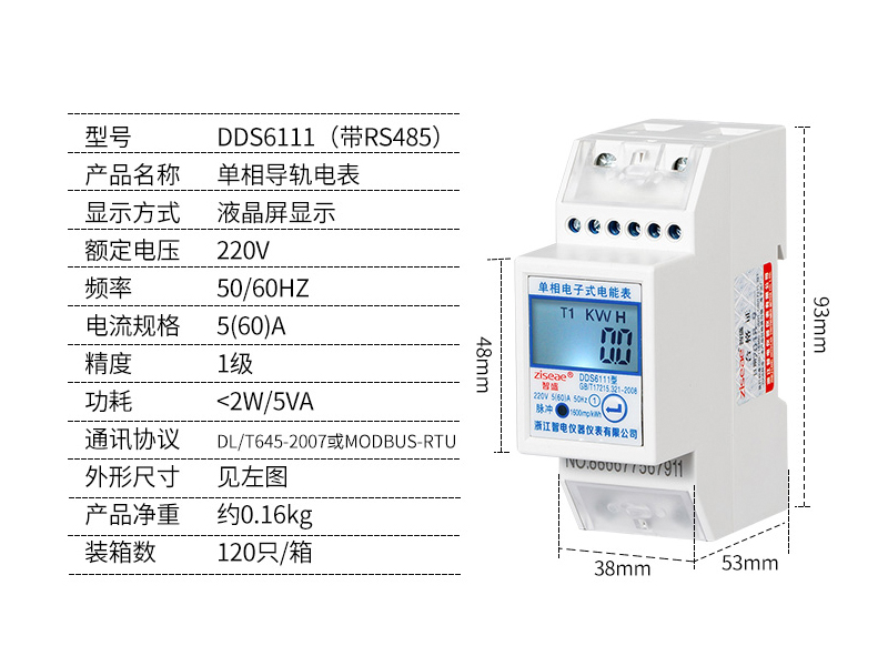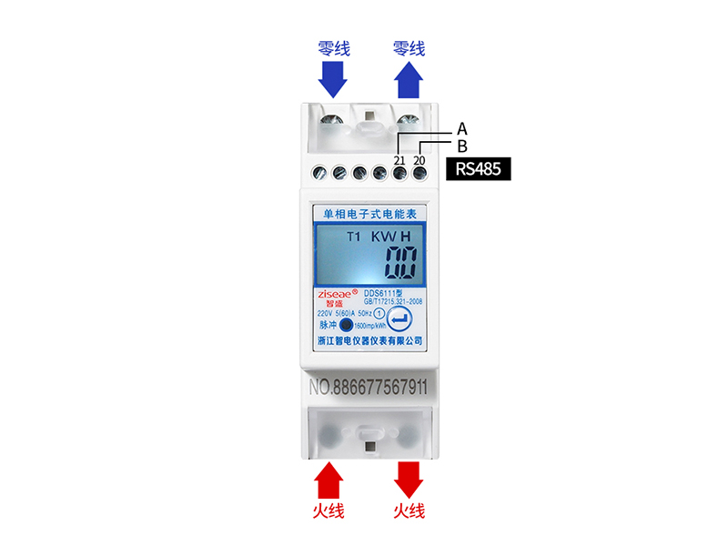DDS6111單相導(dǎo)軌式電表2P(RS485通訊接口)