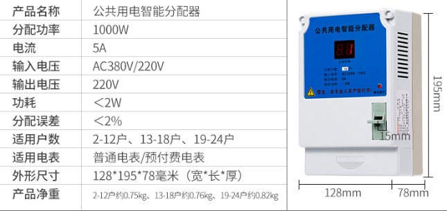 、智盛牌公共用電智能分配器,是將公共樓道用電所消耗的電能(如樓道燈,對講防盜門等),自動分配到各受益用戶的電表中。每天輪流接通一戶電表,開機通電時第一戶電表隨機產生,達到公平分攤電費的目的,本款公共用電智能分配器的特點:外置保險絲更換方便,可實時顯示均分到哪戶。